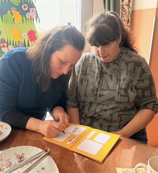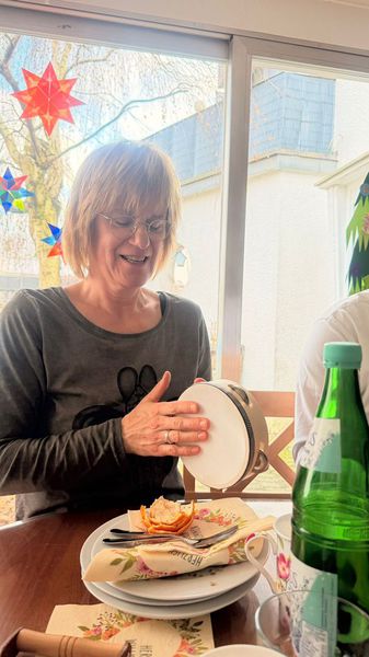 Wir haben unseren Papierfliegertanz aufgeführt und danach mit ihr an der Kaffeetafel gequatscht.